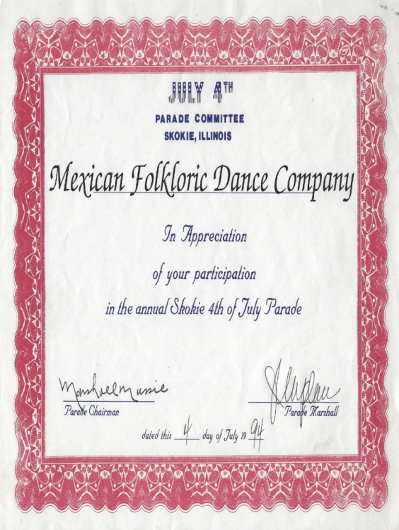 RECOGNITION AWARD from NILES FOURTH OF JULY