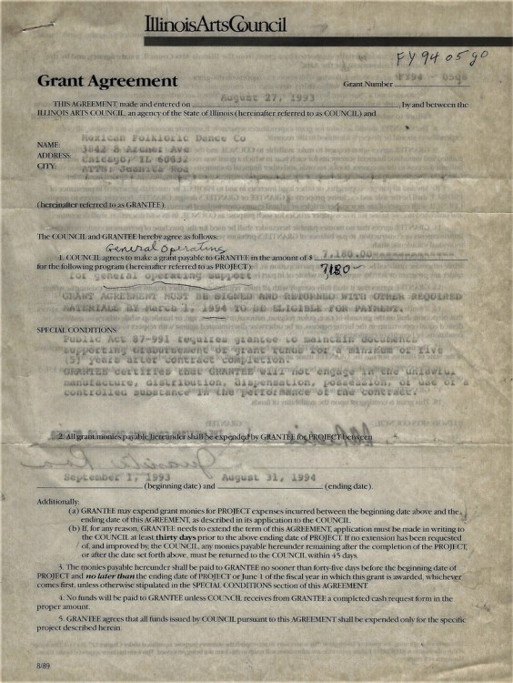 GENERAL OPERATING GRANT FROM ILLINOIS ARTS COUNCIL