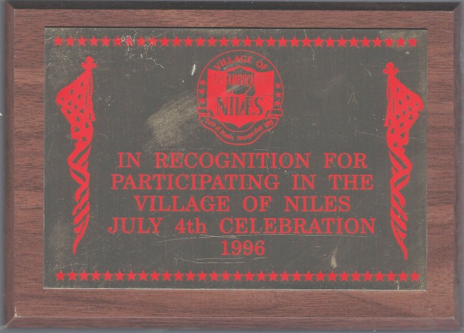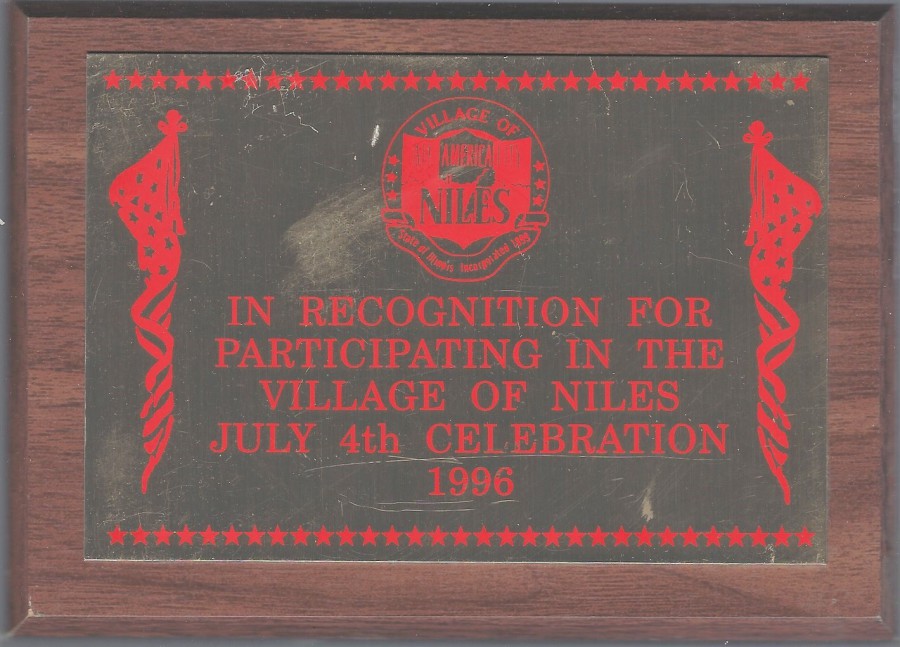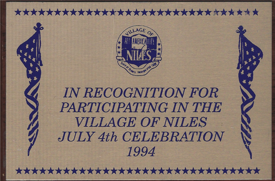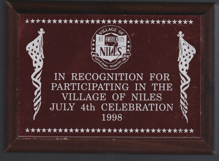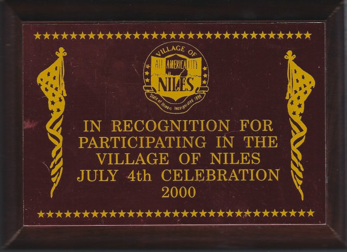 APPRECIATION AWARD from NILES FOURTH OF JULY