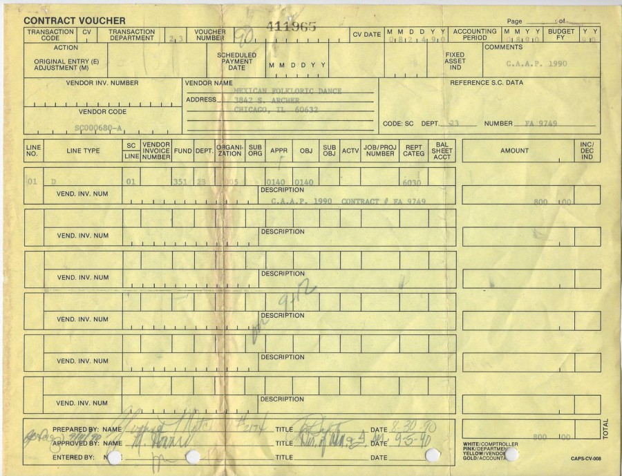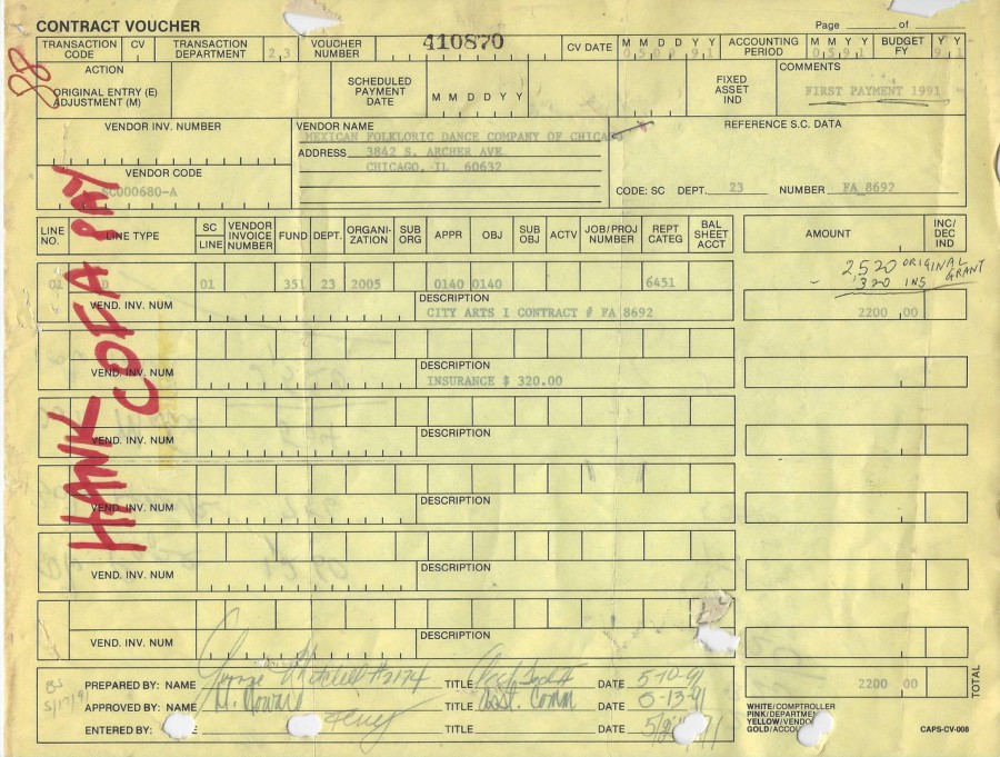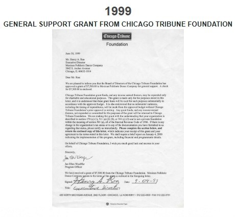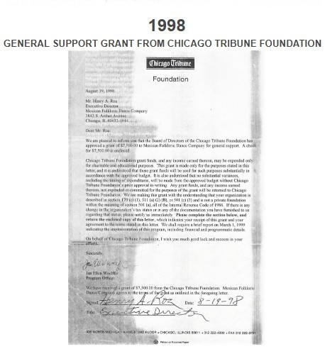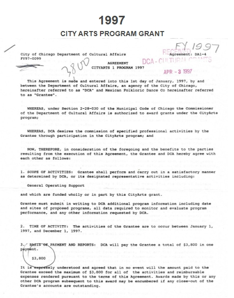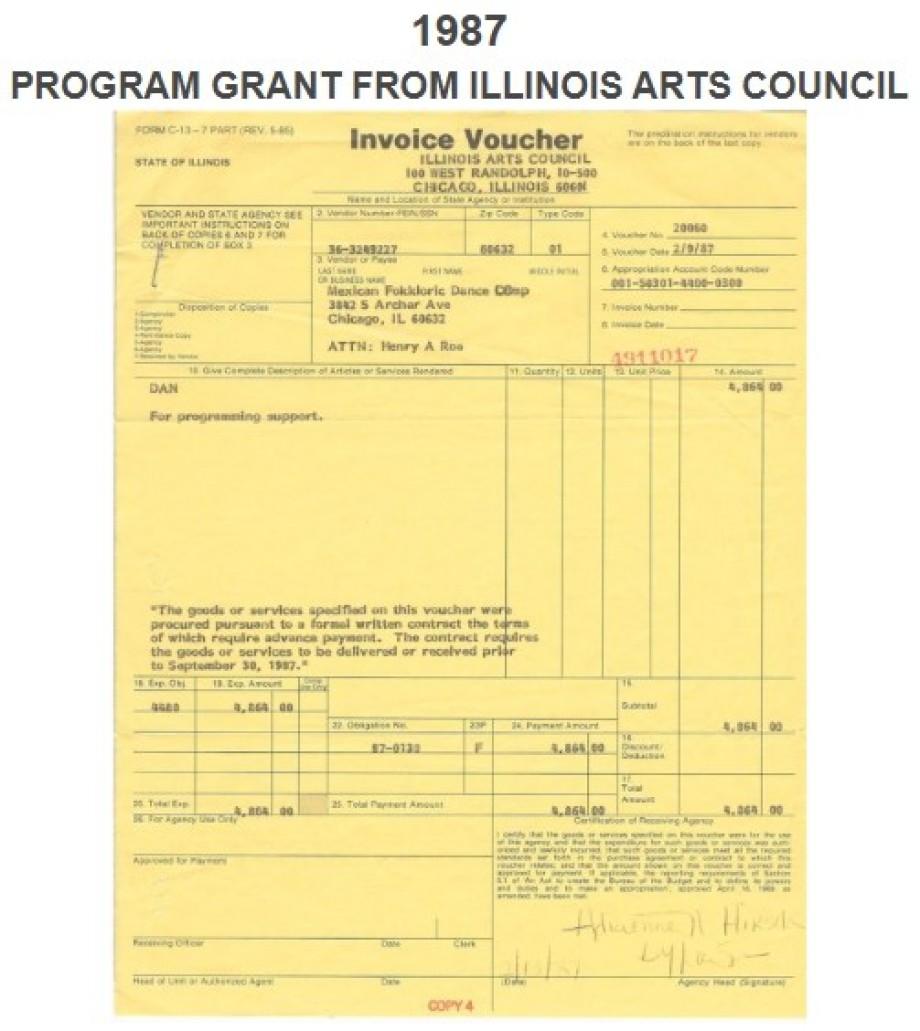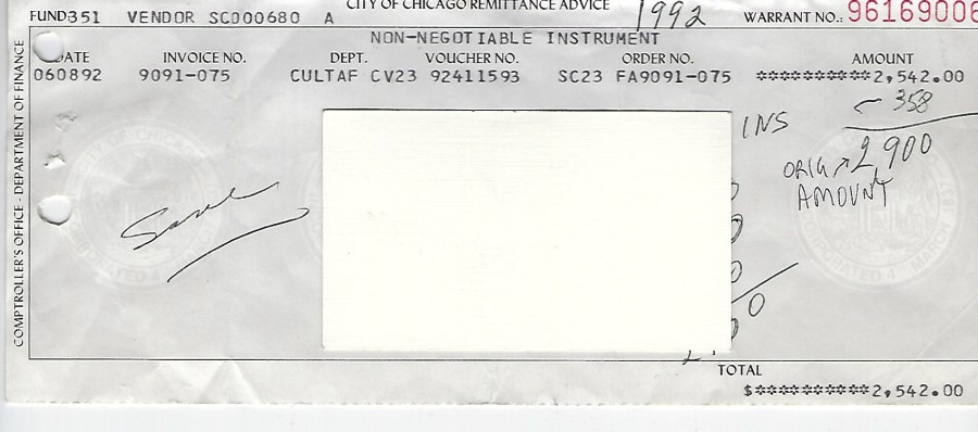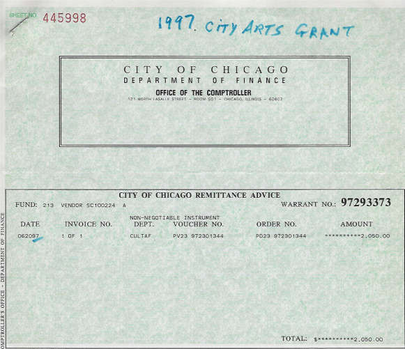 PROGRAM GRANT FROM CHICAGO OFFICE OF FINE ARTS