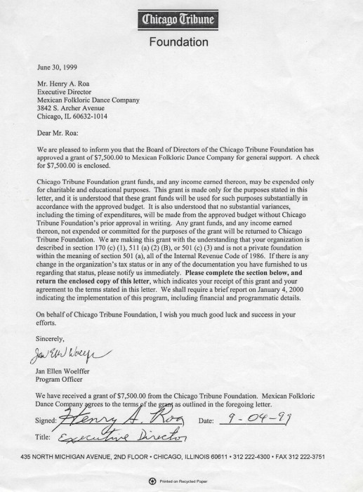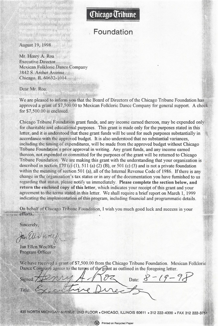GENERAL SUPPORT GRANT FROM CHICAGO TRIBUNE FOUNDATION