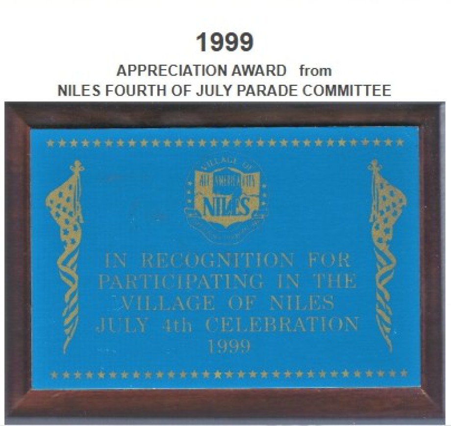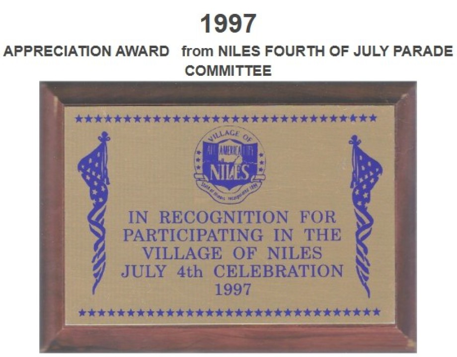 APPRECIATION AWARD from NILES FOURTH OF JULY PARADE COMMITTEE