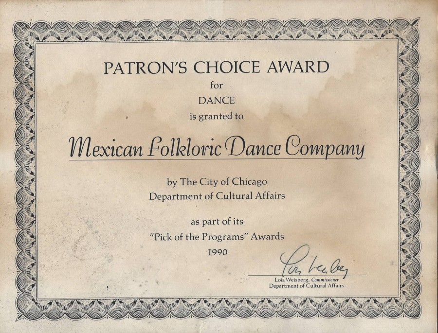 PATRON’S CHOICE AWARD BY CHICAGO DEPARTMENT OF CULTURAL AFFAIRS