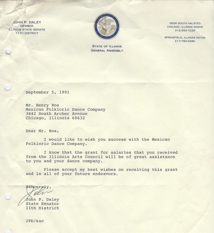 CONGRATULATORY LETTER FROM SENATOR JOHN P. DALEY