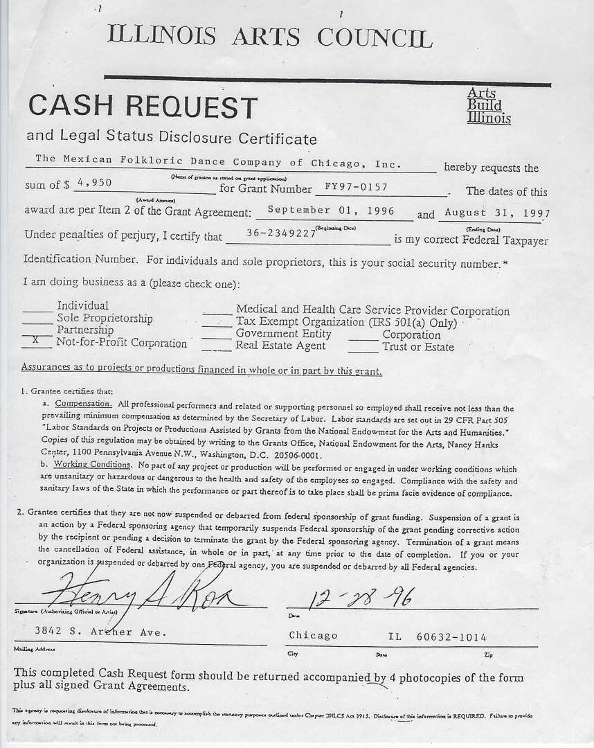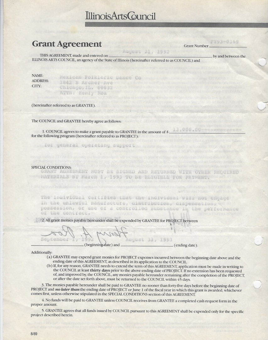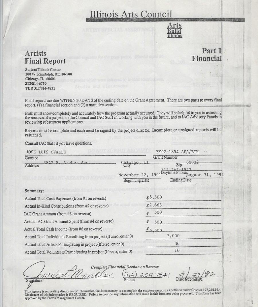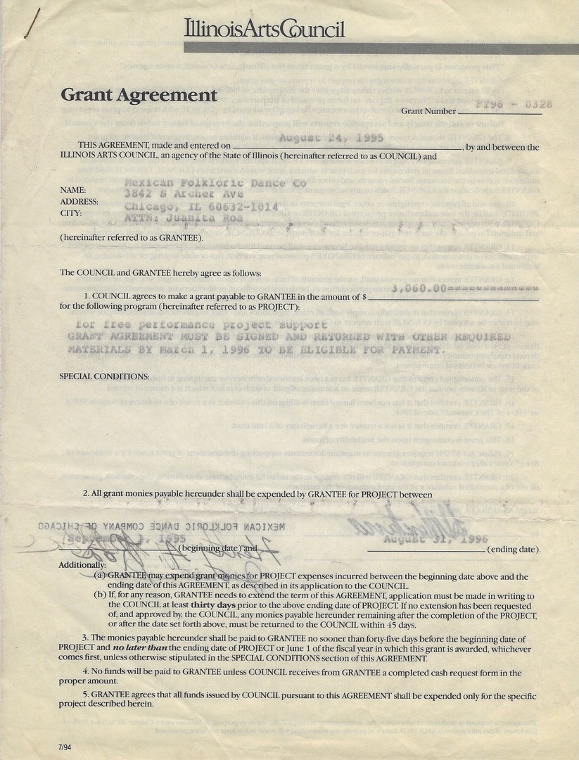 PROGRAM GRANT FROM ILLINOIS ARTS COUNCIL