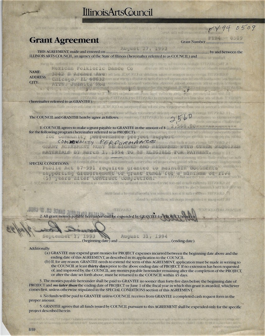 ILLINOIS ARTS COUNCIL COMMUNITY PERFORMANCE GRANT