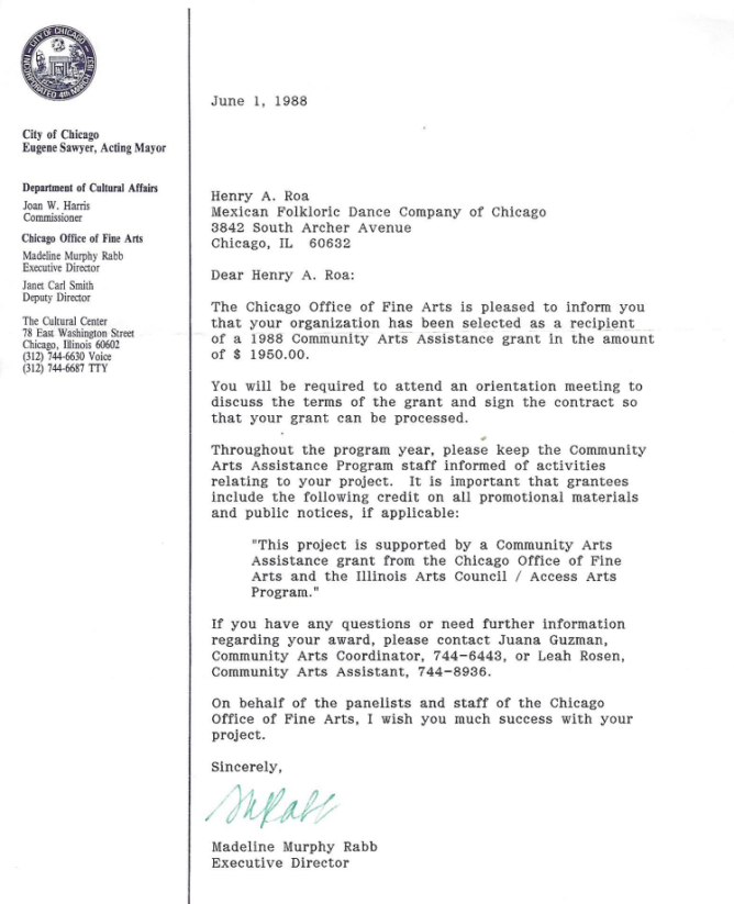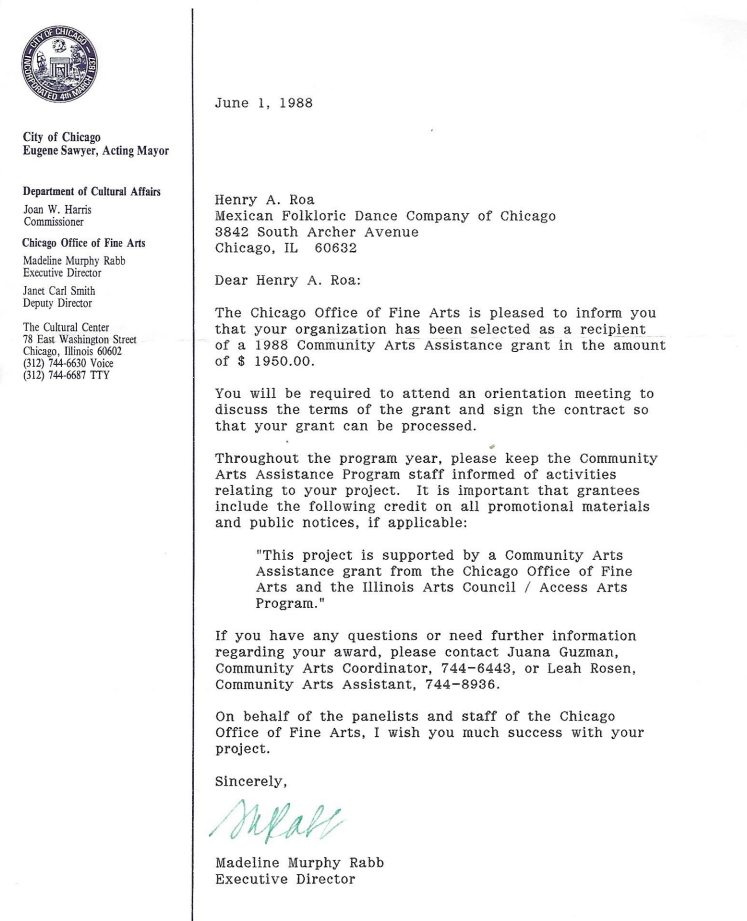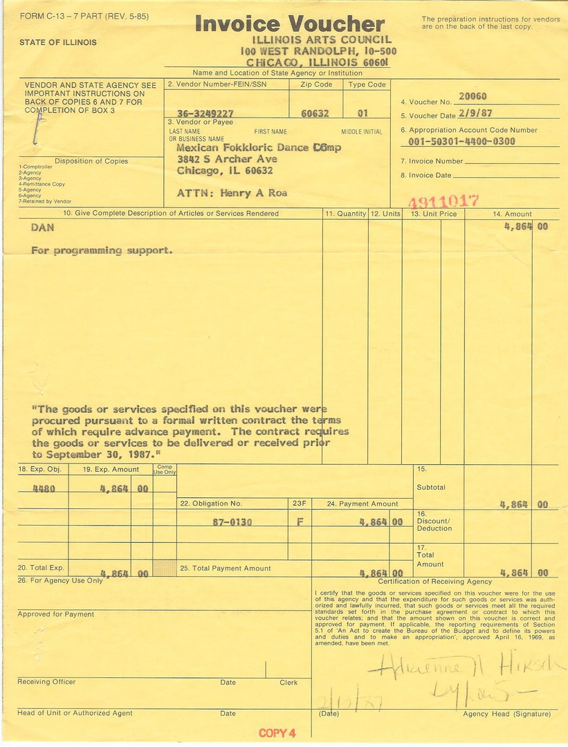 PROGRAM GRANT FROM ILLINOIS ARTS COUNCIL